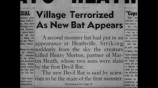 Plot Summary:Dr. Carruthers feels bitter at being betrayed by his employers, Heath and Morton, when they became rich as a result of a product he devised. He gains revenge by electrically enlarging bats and sending them out to kill his employers' family members by instilling in the bats a hatred for a particular perfume he has discovered, which he gets his victims to apply before going outdoors. Johnny Layton, a reporter, finally figures out Carruthers is the killer and, after putting the perfume on himself, douses it on Carruthers in the hopes it will get him to give himself away. One of the two is attacked as the giant bat makes one of its screaming, swooping power dives.